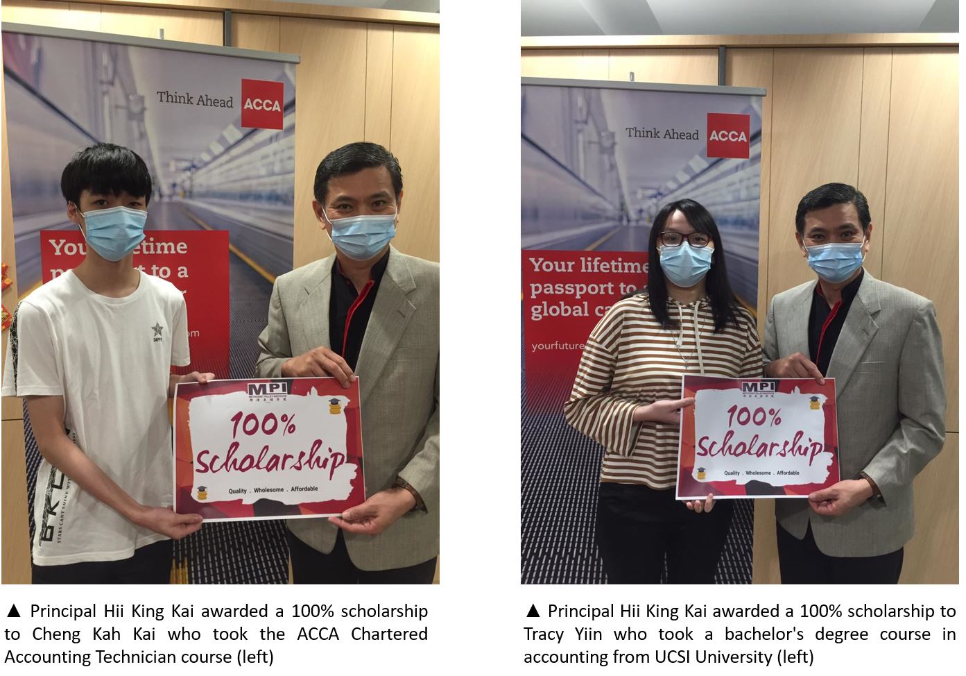 In January 2021, a total of 132 students have successfully received the scholarship awards, with which they can enjoy a 10% to 70% discount on their tuition fees. Among them, 8 students enjoy 100% discount on their tuition fees. Ms Tracy, one of the 100% scholarship recipients expressed her gratitude to MPI because the scholarship enabled her to realize her dream of pursuing tertiary education. Ms Tracy is currently in the final semester of UCSI University’s Bachelor of Arts (Honours) Degree in Accounting programme and soon she will graduate. Her ambition is to become a Chartered Accountant. This is because she has many relatives who have developed their careers successfully in the accounting field, which inspired her to choose the accountancy as her profession.