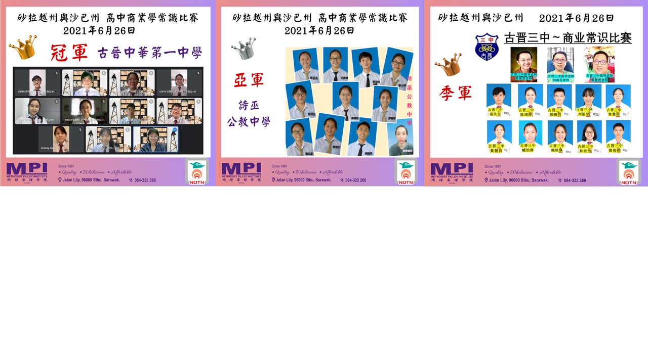臺南大學國際長胡家勝教授表示,很榮幸本次能夠與畢理學院一同主辦講座和工作坊,並特別感謝砂拉越教育部和沙巴教育部批准這項活動。這次擔任評審和講座的老師們皆在學術上有所專攻,相信學生都全力以赴參與比賽,要在這麼短的時間內完成一份商業計畫書是一件很不容易的事情,評審老師給學生的建議將會對於學生們在未來撰寫商業計畫書是很有助益的。這次舉辦講座和工作坊的目的是希望提升中學生對商業學的興趣以及幫助高三學生在商業學科的考試準備,鼓勵學生畢業後在商業領域創造更多的可能,鏈結馬來西亞在疫情之後的觀光及文創活動。